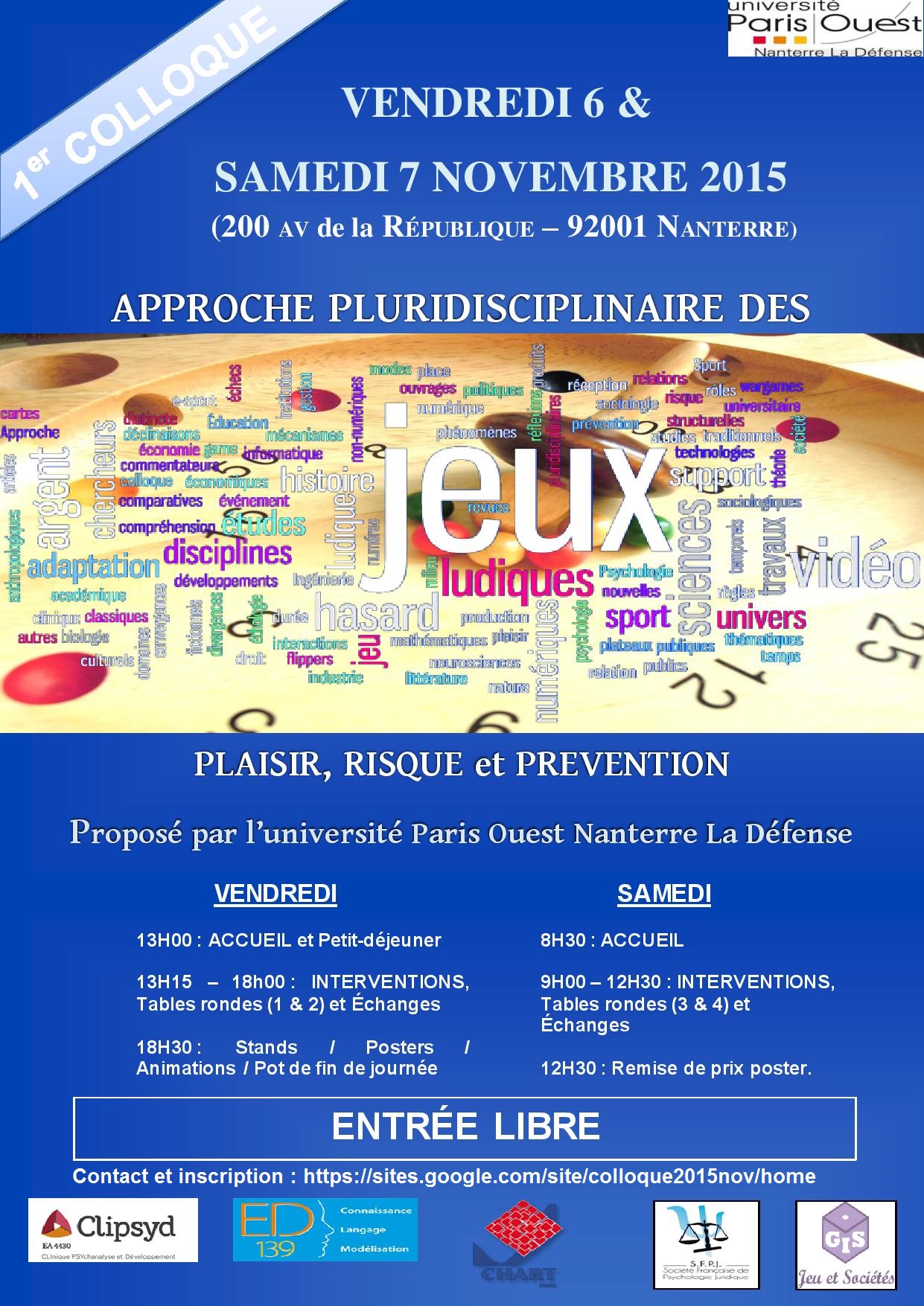 Colloque à l'Université Paris Nanterre : Approche pluridisciplinaire des jeux - Plaisir, risque et prévention.